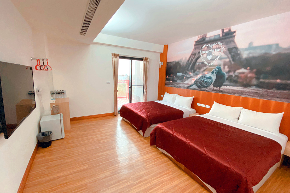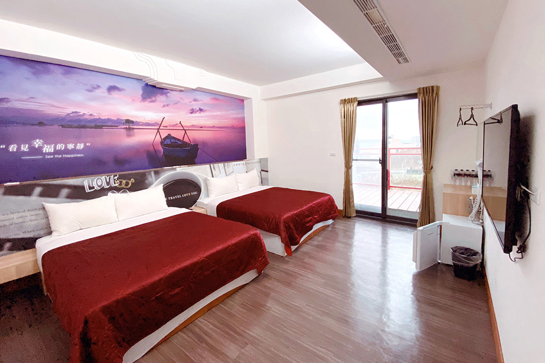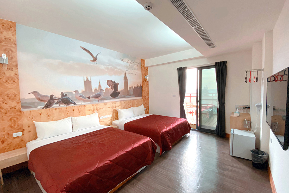全館房型面!屋外的陽光及藍天綠意映照入內,更顯渡假悠閒氣息。設有電梯方便房客上下樓層,臥房空間寬廣,獨自觀景陽台,提供旅人靜心休憩的靜謐之地。每一房間皆配有WIFI上網、50吋大電視、免費瓶裝水...,絕佳地理位置讓您遠離喧嚷,在寧靜的夜晚放鬆入眠......