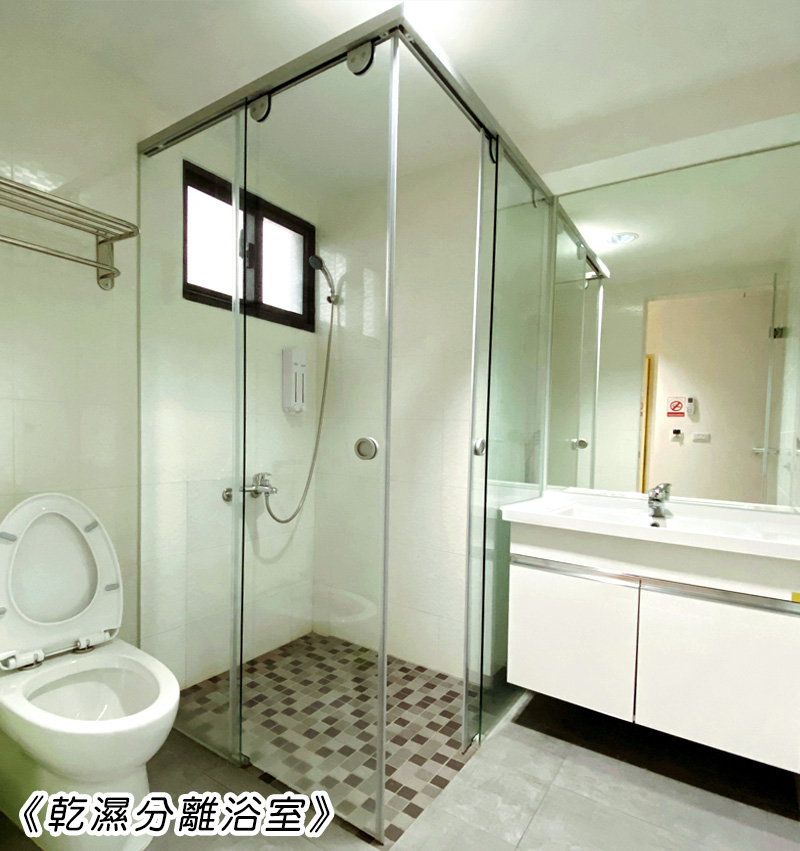 房間設施配有:獨自觀景陽台(附桌椅)、50吋液晶電視、冰箱、吹風機、牆上掛勾附衣架、感應卡式門鎖、空調冷暖氣、WIFI無線上網、免費瓶裝水、乾濕分離衛浴設備(依政府規定不提供拋棄式盥洗用品~敬請自備)